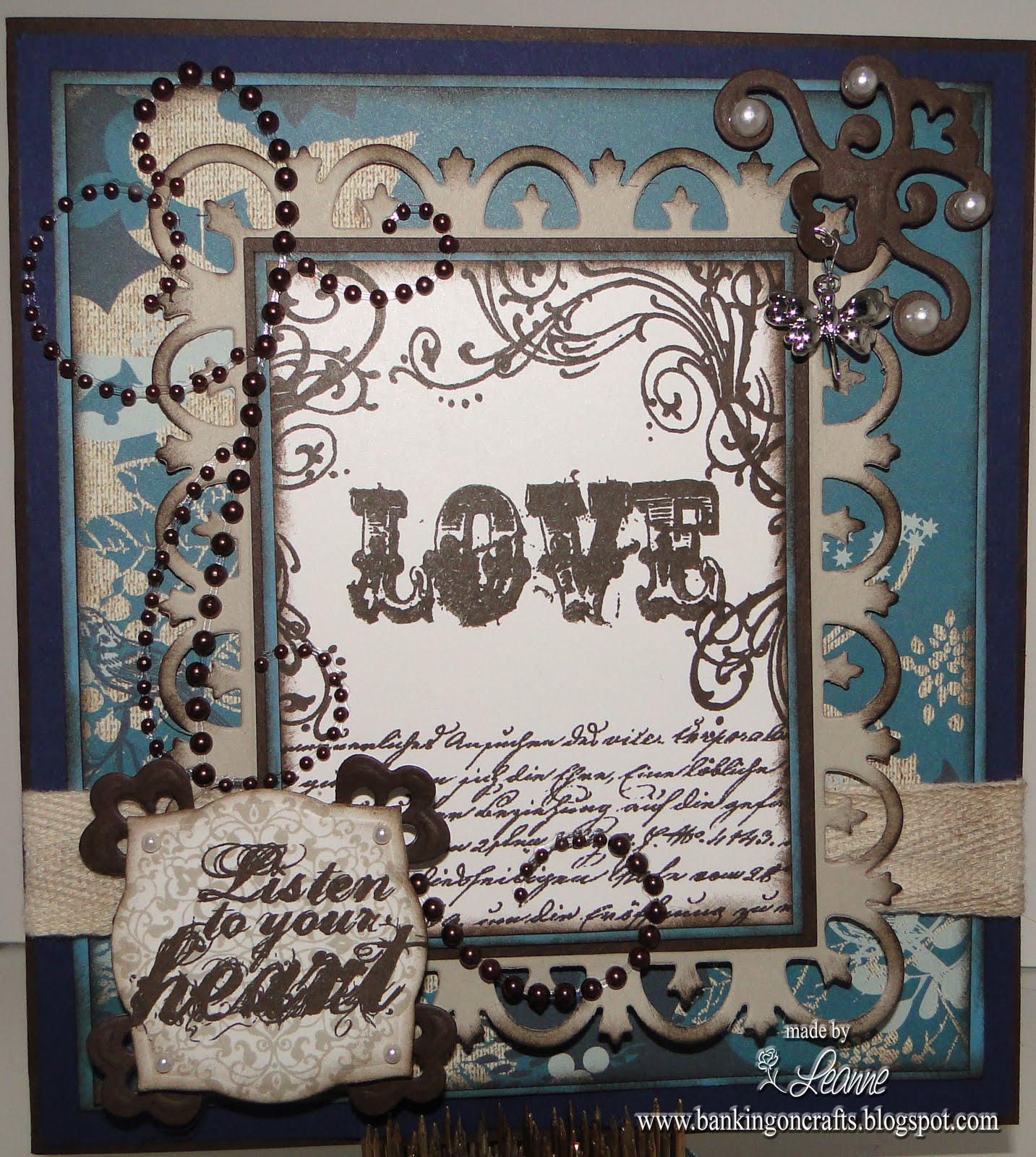 OMGOSH - very pretty Leanne!!! I love the colors and all the whoop-dee-whoooo's, pearls, bling - EVERYTHING! WTG! Thanks for crafting me ...was fun!